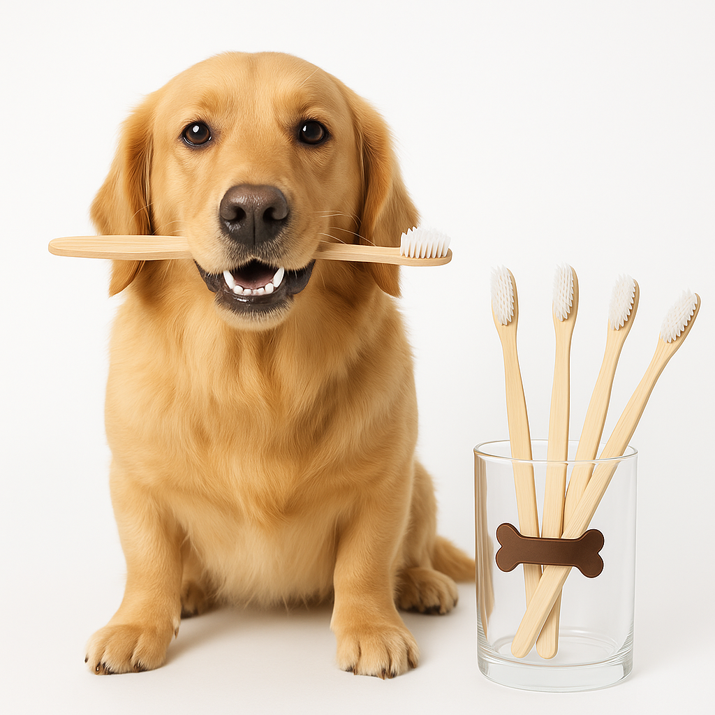 Mantén la sonrisa de tu perro o gato sana con nuestro cepillo dental ecológico de bambú.